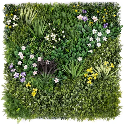 Artificial Living Wall Panels, Spring Bloom Green Plant Flower Foliage, Indoor Outdoor, Home Garden Decoration, Privacy Hedge Fence Screening, UV Stabilised, Waterproof, Natural Look (100cm x 100cm)