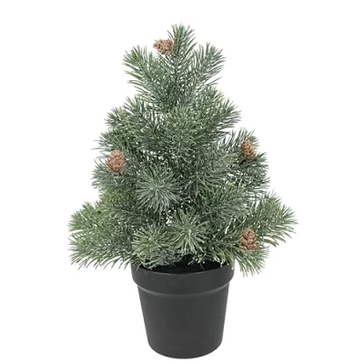 Lifelike mini Christmas tree (38 cm): tightly crafted needles and decorative cones provide an authentic fir look - perfect for festive table or window decoration. With snow effect and loving details: lightly snowed tips give the artificial tree a winter charm - ideal for Advent season and Christmas decoration. Stable and ready to use: the tree stands firmly in the black plastic pot and is ready for decoration - no crafts, no effort, no needles. Multi-purpose: perfect as a table decoration, for the entrance area, the office, shop window or as a loving gift - harmonises with any decor. Durable and easy to clean: made of high-quality plastic - dimensionally stable, reusable and permanently beautiful - ideal for sustainable Christmas decoration.