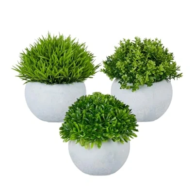 General description Give your home a fresh and modern touch with our set of 3 artificial houseplants. These three realistic-looking plants make fantastic decoration for the living room, bedroom, or kitchen, whether on the windowsill, dining table, or shelf. The stylish pots feature a contemporary grey concrete design. Our potted plants are long-lasting, fade-resistant, and require no watering or sunlight. Technical specifications Dimensions of grass-look plants: approx. 12 x 12 cm (H x D) Pot dimensions: approx. 6 x 9 cm (H x D) Weight: approx. 250 g each Material: Plastic, paper Colour: Green, grey Other information Set of 3 faux plants in pots Natural, lifelike appearance just like real plants Pots with a stylish, modern concrete finish Perfect for windowsills, shelves, desks, dining tables, and more Requires no watering or sunlight Durable materials that won't fade or wither