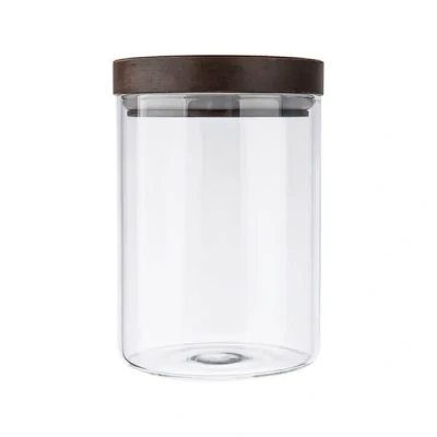 The Artisan Street small storage jar is made from clear glass with a dark stain acacia wood lid. Ideal for storing dried foods like pasta, rice, lentils and other grains, the clear glass allows you to see the contents and the level.The acacia wood lid fits perfectly for a airtight seal and looks stylish on display.Part of a collection with other items available.Dimensions 9 x 9 x 13.5cm. Capacity 550ml.