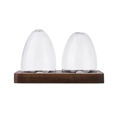 The Artisan Street salt and pepper set feature two glass shakers on top of an acacia wooden board finished in a dark stain. These can be filled with salt and pepper of your choice, the glass making it possible to know which one is which.Easy to refill and part of a collection, other matching items are available.Dimensions 14 x 7 x 8.5cm.