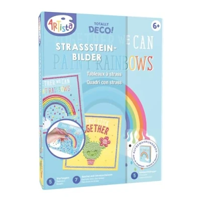 Sparkly rhinestone artworks for crafts and hanging! Complete craft kit, recommended for children over 6 years old. Let the trendy motifs sparkle with great glitter stones - the finished pictures are ideal for decorating and giving as a gift. The DIY kit comes in an attractive storage box where all accessories can be stored. In addition, the box is high-quality and visually appealing like a gift box. Artista craft kits promote children's creativity, concentration and fine motor skills. Contents: 5 templates, 7 bags of different coloured rhinestones, 5 picture hangers, 1 wax plate, 1 rhinestone pen and 1 illustrated instructions (English language not guaranteed)., Manufacturer: Artista