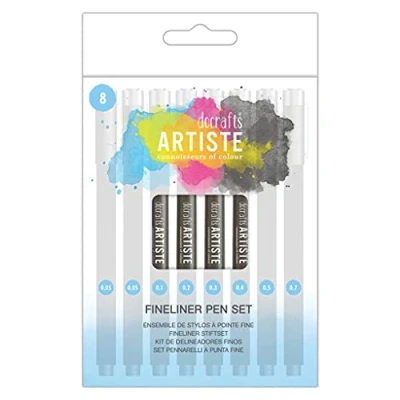 BRAND – Artiste offer high-quality products at great value for money. They provide an easy and economic entry point into art materials. The fantastic quality and ease of use makes Artiste a firm favourite with crafters everywhere. TIP –The point of the pen glides smoothly over paper. IDEAL – Fineliner pens are especially suitable for sketching, outlines, plans, layouts, and drawings. They can be used for all types of art and design projects. USE – Perfect for graphic artists, designers, illustrators, hobbyists, and architects. CONTENTS – The pack contains 8 black fineliner pens in nib size 0.05, 0.05 0.1, 0.2, 0.3, 0.4, 0.5, 0.7mm.