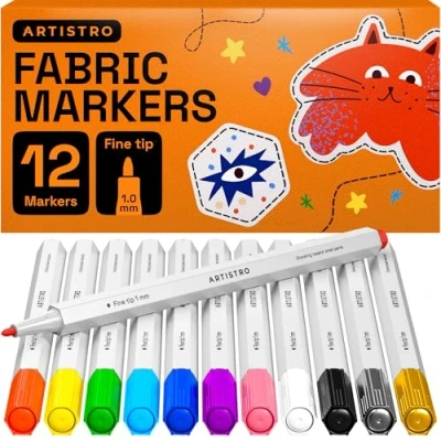 ARTISTRO 12 Fabric Markers Fine Tip Permanent for Clothes No Bleed Pens T Shirts, Bags, Textile, Canvas, and more