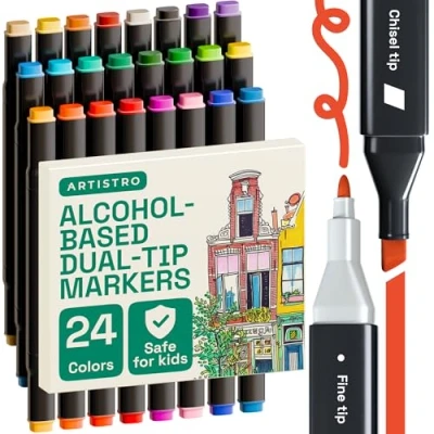 ARTISTRO 24 Dual Tip Alcohol Markers Based Pens Set, Chisel + Fine Tip, Quick Dry, Fade Resistant Ink