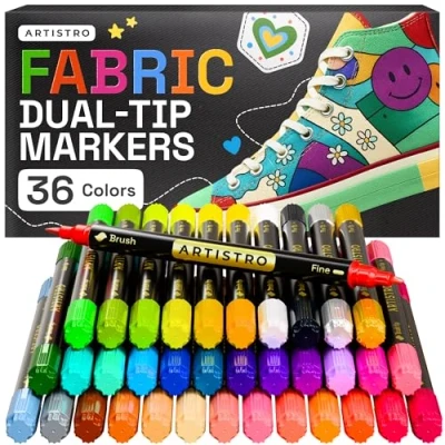 ARTISTRO 36 Fabric Markers Dual Tip Permanent for Clothes No Bleed Pens T Shirts, Bags, Textile, Canvas, and more (Brush Fine Tip)