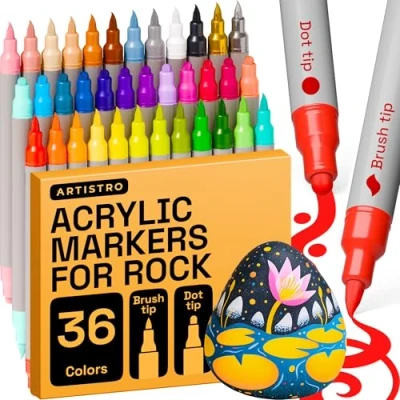 ARTISTRO Acrylic Paint Pens, Markers Dual Tip Markers, for Fabric, Canvas, Rock, Glass, Wood, Paper, DIY, (Dual Dot + Brush, 36)