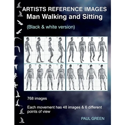 Artists Reference Images Man Walking and Sitting: Black white version