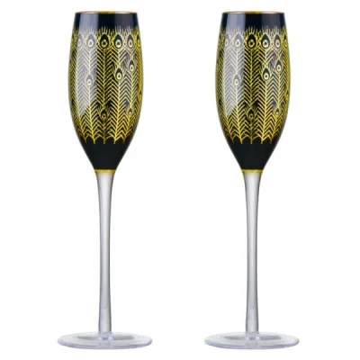 Artland Set of 2 Midnight Peacock Champagne Flutes