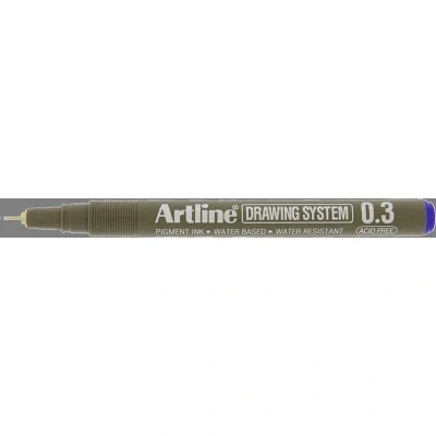 EK233 0.3 Drawing Pen Blue. Artline drawing system pens are a professional pen for technical drawing, illustration & graphic design. The pens contain a water based pigment ink that is acid & Xylene free which is also highly water resistant and fade proof. A friction proof nib enables Artline drawing pens to provide a consistent line width. It is protected with a metal reinforced collar for added strength. This also allows the pen to be used with rulers and stencils without causing any damage to the nib. Artline drawing system pens have nine different nib widths which are 0.05mm, 0.1mm, 0.2mm, 0.3mm, 0.4mm, 0.5mm 0.6mm, 0.7mm & 0.8mm. ART233BU ART233BU ART233BU MPN ART233BU
