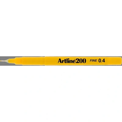 Artline EK200 Yellow 0.4 pen. The Artline 200 fine pen is a high quality popular fineline pen with a 0.4mm needle point tip. Its ink is Xylene free, water based, instant drying and smear resistant. Available with a choice of 12 ink colours Artline 200 fine 0.4 pens are Ideal for all general purpose writing at the office, in school or at home. ART200YW ART200YW ART200YW MPN ART200YW