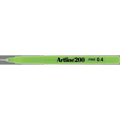 Artline EK200 Yellow Green 0.4 pen. The Artline 200 fine pen is a high quality popular fineline pen with a 0.4mm needle point tip. Its ink is Xylene free, water based, instant drying and smear resistant. Available with a choice of 12 ink colours Artline 200 fine 0.4 pens are Ideal for all general purpose writing at the office, in school or at home. ART200YG ART200YG ART200YG MPN ART200YG