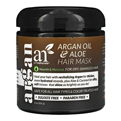 ArtNaturals Argan Hair Mask (8 Fl Oz / 236ml) Deep Conditioner Treatment Organic Jojoba Oil, Aloe Vera, Keratin Repair Dry, Damaged, Color Treated, Natural Growth Sulfate Free