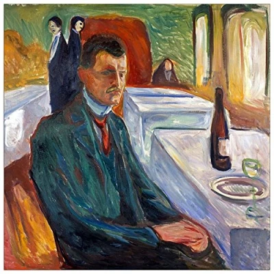ArtPlaza Munch Edvard Portrait with bottle of wine Decorative Panel, Wood, Multi Colour, 50 x 1.8 cm