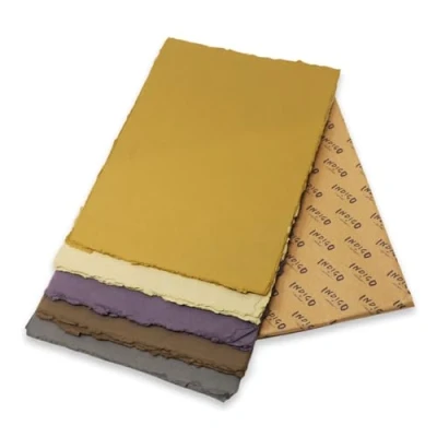 A4 COLOURED COTTON RAG PAPER - Our A4 coloured 100% cotton rag paper packs contain 25 sheets in 5 different colours, each sheet individually handmade, featuring deckled edges, with natural variations in texture, size, and shape between each sheet. 250GSM SMOOTH TEXTURED SURFACE - Smooth in texture, each sheet has a paper weight between 220gsm to 250gsm, suitable for watercolour and all painting uses, as well as all dry and soft media - for oil painting, the surface will need to be prepared with gesso. ARTS AND CRAFTS APPLICATIONS - Our cotton paper is also fantastic for various other arts and crafts applications such as unique wedding stationary, greeting cards and bookbinding. A wonderfully versatile and unique paper. COLOURED HANDMADE PAPER - Five deep, earthy tones: Aubergine, Slate, Mustard, Cocoa and Fawn, finished with a natural deckled edge and suitable for printmakers, illustrators and designers or anyone who wants to work on a more organic surface. HANDMADE/100% RECYCLED/ACID FREE - Made by local artisans in Northern India from 100% recycled cotton, using traditional paper-making methods; the packs come wrapped in recycled kraft paper. The paper is also 100% acid free.