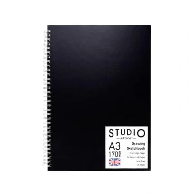 Artway Studio Spiral Bound A3 Sketchbook Portrait 96 Sides/48 Pages of 170gsm Cartridge Paper Black Hardback