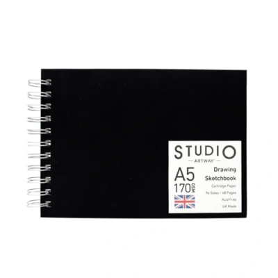 Artway Studio Spiral Bound A5 Sketchbook Landscape 96 Sides/48 Pages of 170gsm Cartridge Paper Black Hardback