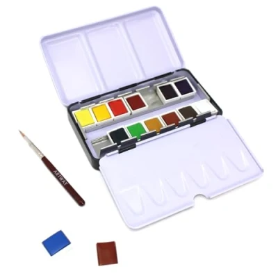 Artway Travel Watercolour Paint Set 14 Half Pans with brush