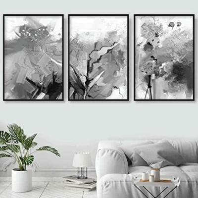 Artze Wall Art Abstract Prints 3 Piece Set, 50 cm Width x 70 Height, Black/White