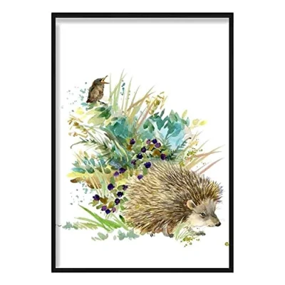 Artze Wall Art Baby Hedgehog Watercolour Poster, 40 cm Width x 50 Height
