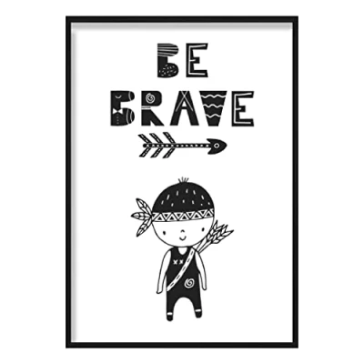 Artze Wall Art Be Brave Scandinavian Nursery Poster, A4 Size, Black/White