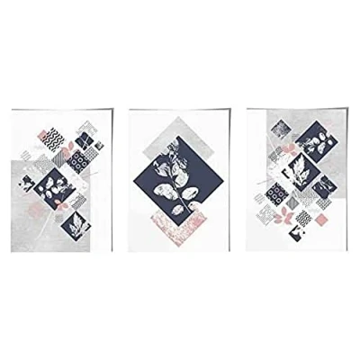 Artze Wall Art Botanical Abstract Geometric Floral Print Art, 30 cm Width x 40 Height, Navy Blue/Pink
