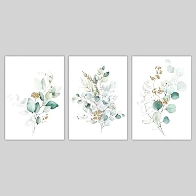 Artze Wall Art Botanical Eucalyptus Prints 3 Piece Set, 30 cm Width x 40 Height, Blue Green/Gold