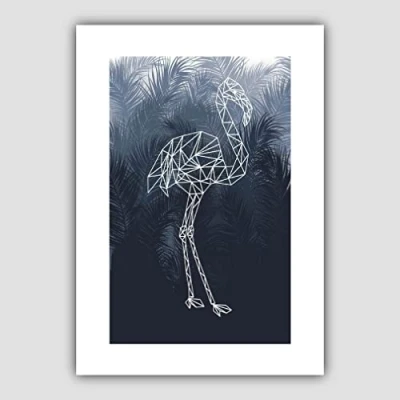 Artze Wall Art Geometric Flamingo Bird with Navy Palms Print, A4 Size