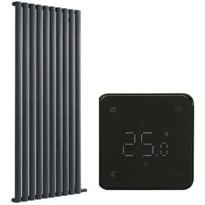 Aruba Ardus Modern Anthracite 1784mm x 590mm Dry Heat Vertical Oval Panel Electric Radiator Wi Fi Thermostat Milano