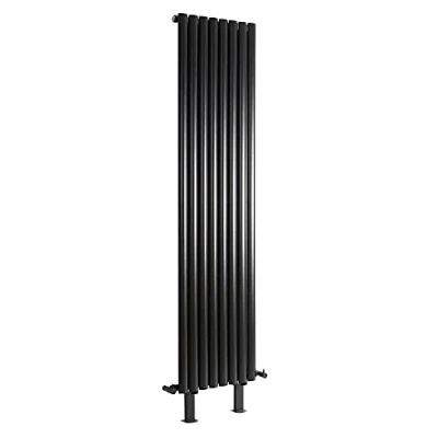 Aruba Modern Black Single Panel Vertical Oval Column Radiator with Feet 1780mm x 472mm Milano