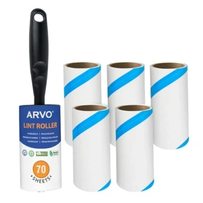 ARVO Lint Roller for Pet Hair and Dust Remover, Rollers Clothes, Furnitures Carpet, Easy to tear, Fluff & Sticky refills (6 pack/420 Sheets 1 Handle 70 sheets/roll)