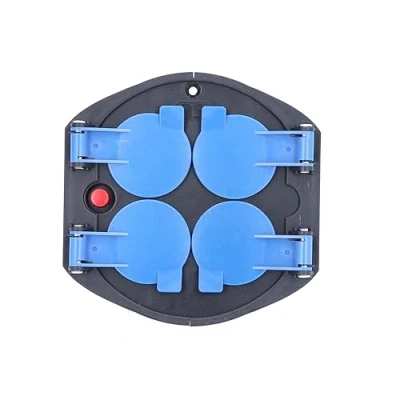 as Schwabe 11542 Socket Insert 4 Way IP20 with Blue Hinged Lid and Thermal Circuit Breaker