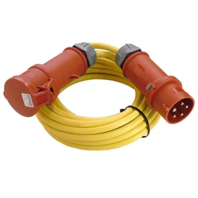 as Schwabe 60714 CEE Verlängerung 400V / 16A, 10m K35 AT N07V3V3 F 5G2,5 mit Phasenwendestecker, gelb, IP44 Außenbereich