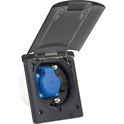 as Schwabe Multifunctional recessed socket, 1 x 230 V / 16 A earthing contact socket + 2 satellite sockets 12 DC, with magnetic closure, IP44, made in Germany, anthracite grey, 62475