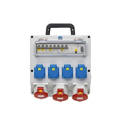 Perfect power supply: prepared for fixed connection from NYM-J up to max. 5x10 // Output with 4 x earthing contact sockets (230V/16A), 1 x CEE socket (400V/16A/5-pin) and 2 x CEE sockets (400V/32A/5-pin) with hinged lids. Robust and safe: robust housing (280 x 280 x 118 mm) made of highly break-proof special plastic including carry handle // 1x FI 40 A, 4-pin, 30 mA, type A, 2x LS C 16 A, 1-pole, 1x LS C 16 A, 3-pin, 1x LS C 32 A, 3-pin Easy to install: all models are wired ready for connection. Hinges on the lid mean that it can be opened when connected and not easy to hang down. With markings for drill holes for wall mounting. QUALITY CRAFTSMANSHIP To ensure long-term and reliable electrical installation, a high quality solid main line branch terminal has been installed Weatherproof and durable: effective protection (IP44) against foreign objects and splashes of water for increased safety and durability. Ideal for use in workshops, garages, halls or cellars., Weight: 8.598028218 pounds, Manufacturer: as - Schwabe