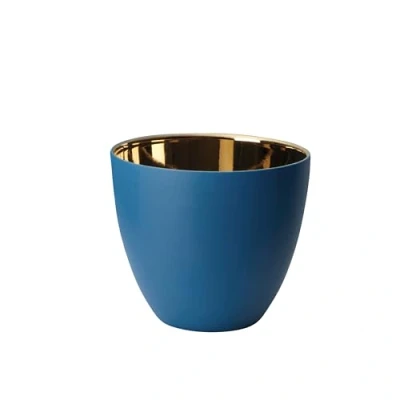 The lantern with blue exterior and golden interior has a height of 6.4 cm and a diameter of 7.2 cm. The ASA tea lights in different colours and sizes harmonise perfectly together. The colours are matched to each other so that they can be individually combined. The blue colour is suitable for all seasons and can be easily combined with many other colours. The golden inside makes candlelight shine warm and sparkling and gives the lantern a luxurious touch.