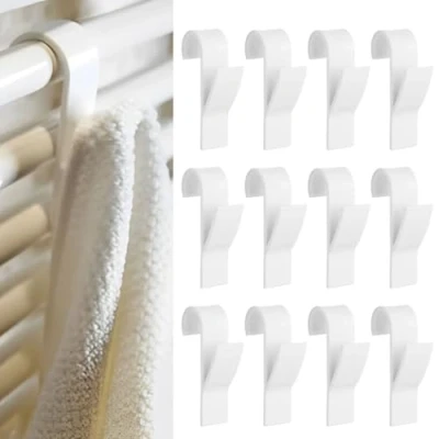 ASelected 12 PCS Radiator Hooks, 9.6x2.5cm Plastic Towel Hanger Hook, No Drilling Household Radiators Body Hooks for Hanging Towels
