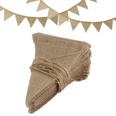 High Quality Material: ASelected Hessian bunting made of high qualiy burlap,which aren’t plastic. Firm,reusable and durable, hard to tear or deformation Size: The burlap bunting contains 48 double-sided triangle flags, the size of each flag is 13X18 CM, The entire banner is 15 m long Bright up Your Garden: Make the party more interesting! ASelected linen material to create vintage style triangular flags. The decoration effect is superb! Come to buy and add a unique scenery to your party Easy Installation: There are long holes in the party bunting with ropes, so all you need to do is string them together at intervals.The banners can also be adjusted to suit your needs. All you have to do is choose the appropriate number and spacing of banners Wide Application: This outdoor bunting is perfect for rustic weddings, birthdays, baby showers, and any other celebratory events.Each hessian flag is blank, so that it can be customized, you can do DIY as your Imagine if you'd like.Perfect for Rustic themed wedding, garden decoration,summer garden party or other ceremony decoration