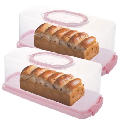 ASelected 2 Pcs Rectangular Cake Carrier with Handle, Airtight Storage Container Lid and Secure Locking Clips, 35 x 16 13CM Plastic Loaf for Loafs, Cupcakes, Baguettes