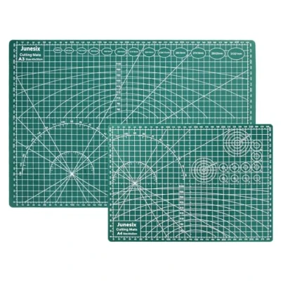 DURABLE: Cutting Mat can protect the safety of the table top of the furniture below, avoid being scratched by sharp objects MULTI-PURPOSE: both sides are printed with grid lines, arcs, Angle lines and lengths, etc.10-50mm circular pattern, suitable for artists and craft lovers SIZE: The size of two process Cutting Mat are A3 (42x28cm)and A4(28x20cm) respectively, and the available size of both sides is cm and mm makings:Cutting Mat is made of composite PVC material and has a thickness of 2.6mm, which can be used as a substitute when you are short of mouse pads NOTE: When the process cutting board is crossed by sharp objects, there will be more obvious marks, which will slowly fade over time, but will not disappear, so that it becomes not obvious