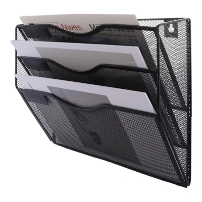MULTI PURPOSE WALL MOUNTED ORGANISER: Can be used in the office to store files, magazines, A4 papers, bills, clipboards, letters, etc., can also be used in children's rooms to hang cartoon books, comics, any teaching books, can also be used in schools to help teachers to organize the desktop stationery supplies SAVE SPACE: With this wall mounted file holder, your desk will become neat and tidy, more space for your needed supplies, no more missing important documents, and more convenient to access items. This wall mounted file holder makes the most of vertical space, freeing up space on your desk and keeping your important documents within easy reach DURABLE STATIONERY ORGANISER: Made of sturdy metal and stretchy mesh, strong enough to hold up, the edge layer is polished and wrapped, very smooth and won't scratch your hands, meet your needs 3 SLOT DOCUMENT POCKET: Large capacity, not only can meet your daily needs, but also can be used as a small bookshelf SIZE DETAILS (cm): 32 W x 10 D (top depth) x 27 H cm, Weight: 1.10231131 Pounds, Manufacturer: ASelected