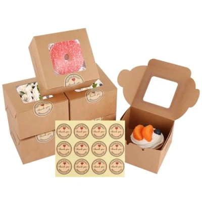 SEPARATE WINDOW WITH STICKERS: Cake box with transparent window, cute and practical, you can see the food inside through the window, simple and elegant; 5 stickers and 50 cake boxes EASY TO ASSEMBLE: Cake box with window Follow the steps provided in the picture, fold along the folds of the carton, and soon you will have a cute little square carton that is perfect for holding your cakes FRIENDLY: The brown cupcake box is made of friendly paper material, safe and recyclable; very sturdy and stays sealed during transport; you can also add stickers to the box to keep it sealed WIDE APPLICATION: Cookie boxes are suitable for parties, birthdays, graduations, Christmas, Thanksgiving, Halloween, weddings, anniversaries, party favours, holidays, festivals and other occasions PERFECT SIZE: 4x4x2.5 inches, sturdy design helps you hold, store, transport and display your dessert creations elegantly and conveniently. Great for holding some biscuits, macaroons and chocolate strawberries, including pastries muffins donuts desserts cakes strawberries candy, Weight: 2.1605301676 Pounds, Manufacturer: ASelected
