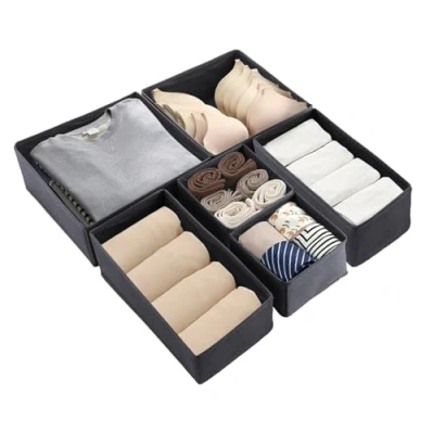 ASelected 6 Pcs Drawer Organisers Grey Wardrobe Storage Organiser Foldable Box For Bras Socks Underwear Ties Scarves Cosmetics