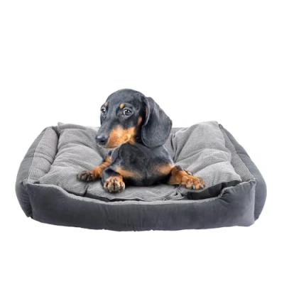 ASelected Medium Dog Bed,Washable Dod Cat Beds with Anti Slip Bottom,Indoor Puppy Bed,Orthopedic Beds,Soft Pet Sofa Bed,Soft Corn Velvet Bed for Large Cat,Grey,68x50x11 cm