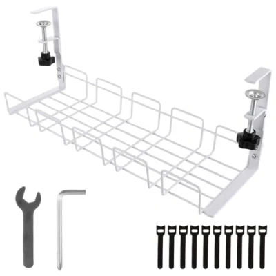 Underdesk cable bracket:1 cable bracket, made of thick metal, very strong and durable. There are also 10 cable ties to help you sort the wires, cable bracket Size is 40.5x16x13CM, It is fit for the desk with the thickness between 5mm and 55mm. Please make sure the size is suitable before purchase. No Drill, No Glue:No screws or adhesive tape is needed for installation. Just need to tighten the black clamp along the desktop and organize your cables and power panels. Beautify Your Office Environment:The metal cable management tray can help you easily organize and tidy up messy power cables, wires, date cords, power strips in office, dormitory, home, etc. No cable mess and tripping hazards, A single cable management tray can hold all sorts of power cables, data cords, power adapters or power strips up to 10lbs. Sturdy Metal Cable Tray:With the sturdy metal construction and black power coating surface, the under desk wire organizer is rustproof, corrosion-resistant and durable for long time use. No need to worry about breaking or sagging when holding the messy cables and other accessories. Unique Design:the open mesh design also ensures maximum cable ventilation to prevent heat. Also, it is convenient to clean up with a damp cloth and prevent dust accumulation during use., Manufacturer: ASelected