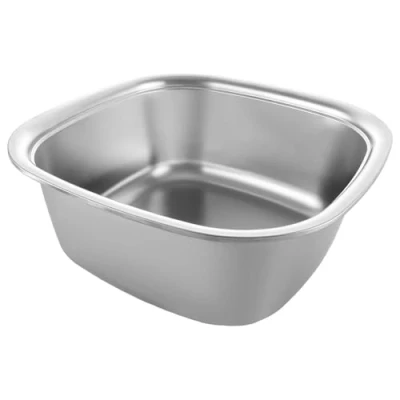 SPECIFICATION:Washing Up Bowl, they are 34x34cm.high13cm PREMIUM STAINLESS STEEL:Made of 304 Stainless Steel. This washing up bowl is the perfect antidote to cheap and flimsy plastic washing up bowls. It is super strong & won’t degrade or discolour, crack or stain like plastic STYLISH VERSATILE:Its size is suitable for most kitchen sinks, farmhouse or butler sinks. It has a spacious capacity that can easily fit the plates and all the POTS and pans. For washing salads, pasta, noodles, fruits, vegetables and rice. Mixing bowl for kitchen preparation, mixing, pasting, serving and cooking BUILT TO LAST:You’ll never need to buy another washing up bowl again Easy to Clean:simply rinse or wipe clean. Protects the sink from stains, marks and odours when peeling vegetables or washing up