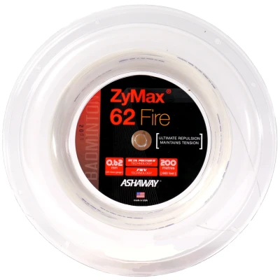 The Ashaway Zymax 62 Fire is a multifilament badminton string providing great levels of repulsion power, control and tension stability. This durable string with a gauge of 22 (0.62mm) is best suited to professional and advanced amateur players. Featuring ZyWeave technology and revolutionary BETA fibres, the string offers a combination of strength, toughness, elasticity and dynamic stiffness. It ensures consistent, reliable performance and comes in a 200m (660ft) reel.