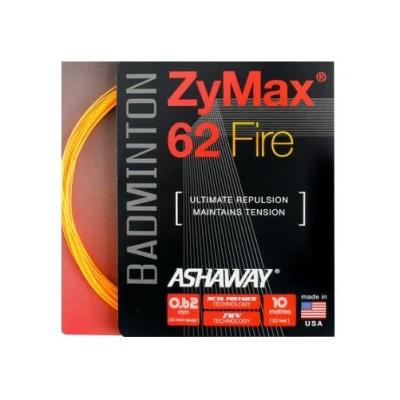 The Ashaway Zymax 62 Fire is a multifilament badminton string suitable for players seeking maximum repulsion and shuttle response. It features a gauge of 22 (0.62mm) and uses innovative ZyWeave technology to prevent tension loss during stringing and restringing. Designed for professional and advanced amateur players, the string delivers reliable performance and provides greater strength, improved elasticity and dynamic stiffness thanks to BETA polymer technology. It is supplied as a 10m (33ft) set.