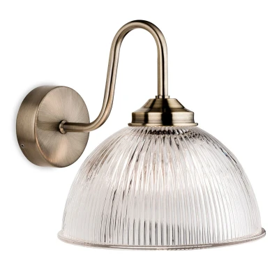 Ashford 1 Light Wall Antique Brass with Clear Ribbed Glass, E14