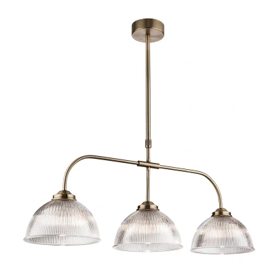 Ashford 3 Light Bar Ceiling Pendant Antique Brass with Clear Ribbed Glass, E14